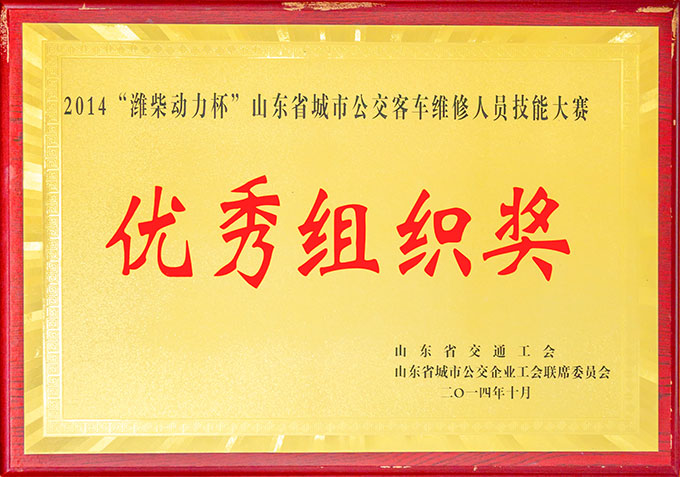 2014“濰柴動力杯”山東省城市公交客車維修人員技能大賽優秀組織獎