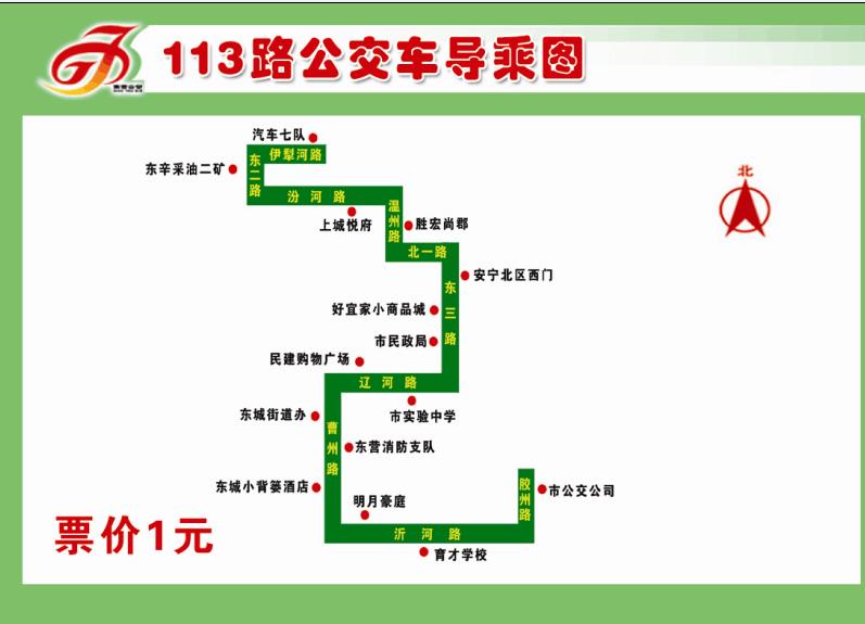 113路:該線路自汽車七隊(duì)始發(fā),經(jīng)伊犁河路(華瑞小區(qū))、東二路(東辛采油二礦、盛大商場(chǎng)),改經(jīng)汾河路(青盛小區(qū)、上城悅府)、溫州路(勝宏尚郡),到達(dá)北一路后,恢復(fù)原線路,線路里程、票價(jià)、班次均不變。