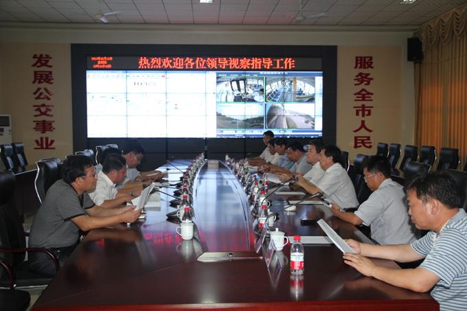 2013年8月15日下午,市人大常委會副主任張傳勝帶領市人大內務司法委委員來市公交公司視察交通安全工作。市交通運輸局、市公安局、市城市管理局等單位有關負責同志陪同視察。 視察團首先在3G會議室聽取了公司安全工作匯報并觀看了3G智能調度系統演示,隨后又到汽車一隊進行了實地考察。市人大領導對市公交公司的各項工作給與了肯定,希望下一步繼續努力為全市人民提供更加安全便捷舒適的公交出行環境。