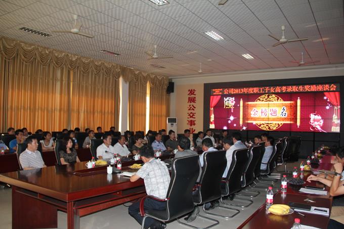 8月24日上午,市公交公司舉行了2013年度職工子女高考錄取生獎勵座談會,為今年高考錄取的職工子女進行獎勵。公司經理朱新民出席,受獎勵的職工及子女參加。