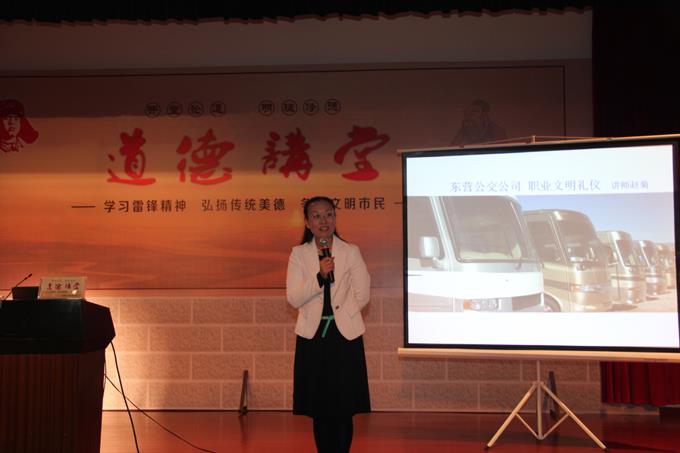 2013年9月27日晚,市公交公司第九場道德講堂活動在公司南會議室舉行,此次活動按照自我反省、唱歌曲、學模范、誦經(jīng)典、發(fā)善心、送吉祥、做點評七個規(guī)定環(huán)節(jié)進行。公司特別邀請上海富禮德禮儀服務有限公司高級禮儀講師趙菊為大家做“職業(yè)文明禮儀”的講座。趙老師的演講,深入淺出,結合實際,讓我們受益匪淺。在今后的工作生活中我們必定更加“懂禮、知禮、用禮、善禮”,為廣大市民提供更加優(yōu)質的服務?;顒咏Y束時每個人還領到了印有“二十四孝”的公交道德講堂折扇。