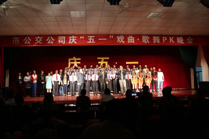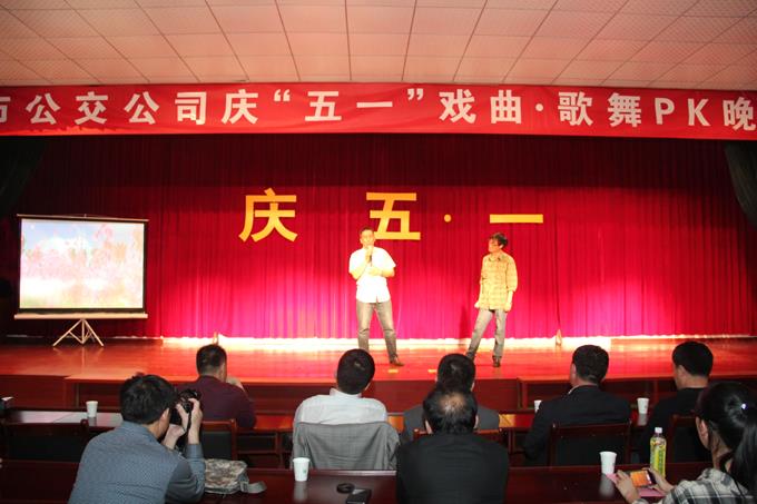 為慶祝五.一勞動節,活躍職工的業余文化生活,大力弘揚“中國夢•勞動美”。市公交公司于4月30日晚舉辦了“2014年卡拉OK戲曲、歌曲PK聯誼晚會”。 聯誼晚會采取戲曲隊和歌舞隊兩隊PK的形式,演員全部是來自公司各單位的職工和戲曲票社的票友,節目本著自編自排節約開支的原則,以汽車三隊選送的歌伴舞開場,演的非常精彩,觀眾參與互動,高潮迭起,涌現出一批年輕職工登臺演唱,展示了職工隊伍中充滿了激情和活力。晚會在全體演員共同合唱的《咱們工人有力量》的歌聲中落幕。