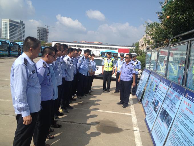 交警二大隊一中隊林樹國隊長向駕駛員通報了日常公交駕駛員行車中出現的幾種常見錯誤違法行為,又逐一講解了安全展板上列舉的各類事故案例和近期國內其他地市發生的公交車失火、爆炸事件和其原因,告知大家如何識別可疑乘車人員和應對突發情況,以防類似事故發生。