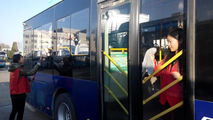 來自東營市職業(yè)學(xué)校會計(jì)學(xué)院的大學(xué)生和市公交公司汽車一隊(duì)職工共計(jì)24人,分兩個(gè)小組,一組乘坐公交車上路為特需乘客服務(wù),幫助疏導(dǎo)乘客,另外一組幫助駕駛員擦拭公交車,清掃車廂衛(wèi)生。大家工作起來井然有序,有條不紊,尤其活躍在車廂為乘客服務(wù)的志愿者們,更是得到了乘客的一致好評,成為公交車上一道靚麗的風(fēng)景。