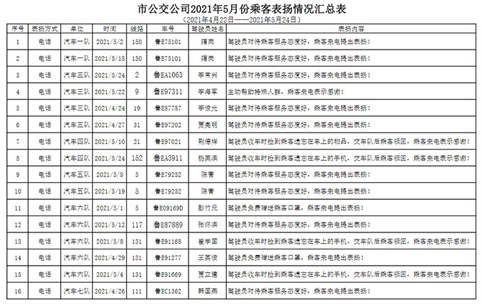 廣大駕駛員要以受到表揚的同志為榜樣,愛崗敬業(yè)、無私奉獻(xiàn),為樹立和維護公司的外在形象作出貢獻(xiàn)。同時也希望受到表揚的同志戒驕戒躁,再接再厲,發(fā)揮模范作用,繼續(xù)為公司的服務(wù)提升工作貢獻(xiàn)力量。