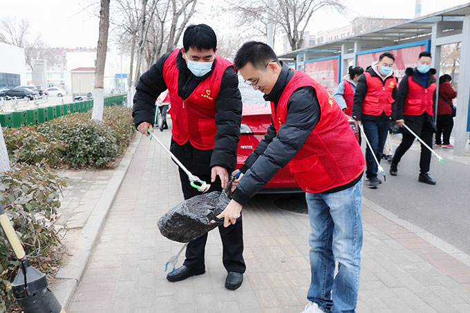 大家認(rèn)真清理路邊角落里的煙頭,建筑物下的雜物,院落門前的垃圾。雖然天氣寒冷,但大家干勁十足。公交志愿者用垃圾夾、掃帚等工具,對(duì)責(zé)任區(qū)內(nèi)的垃圾進(jìn)行全面清理,撿到的垃圾都隨手放進(jìn)提前備好的垃圾袋中,或直接投入附近的垃圾箱里,努力做到責(zé)任區(qū)內(nèi)無(wú)明顯積存垃圾,無(wú)亂貼亂畫,環(huán)境整潔。根據(jù)疫情防控需要,參加義務(wù)勞動(dòng)的志愿者們均佩戴了口罩,積極響應(yīng)國(guó)家號(hào)召,做好疫情防護(hù)工作?!霸谝咔榉雷o(hù)的特殊時(shí)期,也算是勞中作樂(lè)吧。”這積極的勞動(dòng)態(tài)度也讓大家更有動(dòng)力參加義務(wù)勞動(dòng)了。