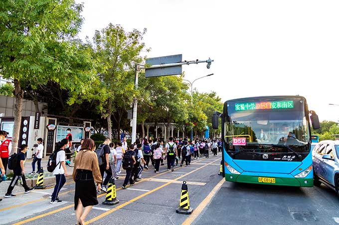 為平穩有序開學保駕護航,精準對接學生家長需求,努力營造家長放心、學生滿意、社會認可的安全出行環境,東營公交依托東營智慧公交系統推出“定制公交”助學服務,助學服務自上線以來,深受學生家長的喜愛。2022年8月累計收到通學服務相關需求接近萬條,東營公交快速響應,根據前期收集到的學生通學出行需求,統籌整合公交運力資源,規劃開通30條助學“定制公交”線路,71條“專線公交”,每日安排運行262個班次,點對點服務學生出行,助力學生直達校園,全力保障學生出行。同時為更好地守護學子出行,公交駕駛員發車前均會進行酒測和體溫檢測,對運營車輛進行全面檢查,車輛返回場站進行消毒清理,在全面做好各項防疫措施的同時,確保學生們的乘車安全。