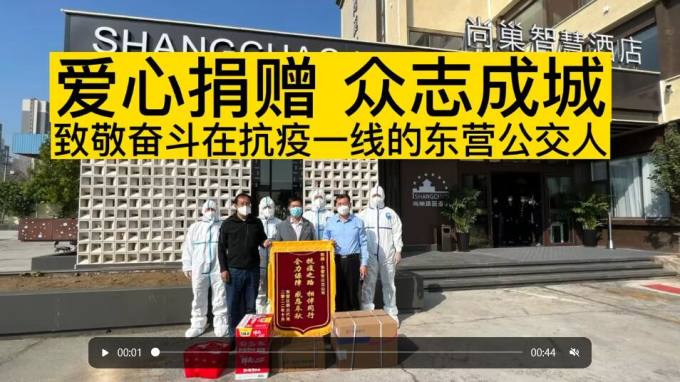 近日,在我市疫情防控的關(guān)鍵時刻,東營區(qū)群眾代表郭永軍捐贈一批愛心物資,用于疫情防控工作,為抗疫工作貢獻(xiàn)自己的力量,并向奮戰(zhàn)在抗疫一線的東營公交人送錦旗表示感謝,用真情和愛心傳遞社會正能量,助力疫情防控工作。