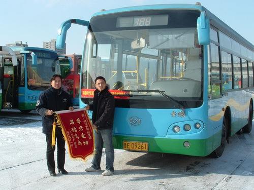 王樹懷的父親王科全老人和老伴都是勝利發(fā)電廠的退休職工,老家在東營村。閑暇之時(shí),二老經(jīng)常乘坐126路外出遛彎或購物,他們對(duì)126路駕駛員們的服務(wù)態(tài)度非常滿意,尤其是對(duì)魯E9261號(hào)駕駛員田惠霞的服務(wù)態(tài)度更是贊不絕口。由于二老行動(dòng)不便,有時(shí)還帶著孩子,田惠霞每次遇到二老乘車,都是拉好手剎起身下車攙扶二老上車,上車后遇到?jīng)]有座位的時(shí)候主動(dòng)用話筒幫助二老安排座位,田惠霞的真情服務(wù)感動(dòng)著二老,便委托兒子王樹懷先生給田惠霞送來了錦旗,聊表心意!