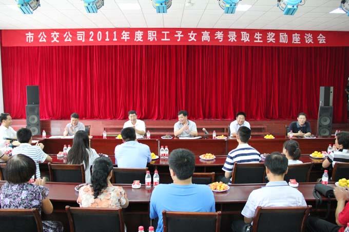 8月27日上午,市公交公司舉行了2011年度職工子女高考錄取生獎勵座談會,為今年高考錄取的職工子女進行獎勵。公司經理朱新民出席,受獎勵的職工及子女參加。