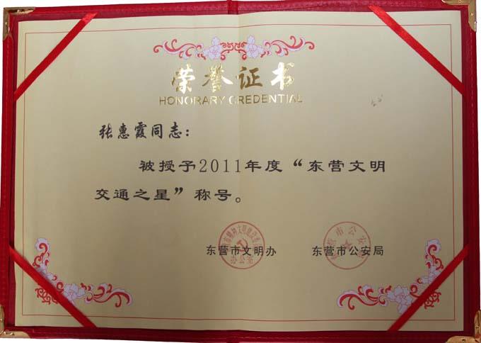 近日,在東營市文明辦和東營市公安局聯合組織開展的“東營文明交通之星”評選活動中,市公交公司張惠霞、劉軍利、楊金光等三名公交駕駛員經過層層選拔在1000余名候選人中脫穎而出,最終獲得了“東營文明交通之星”榮譽稱號。