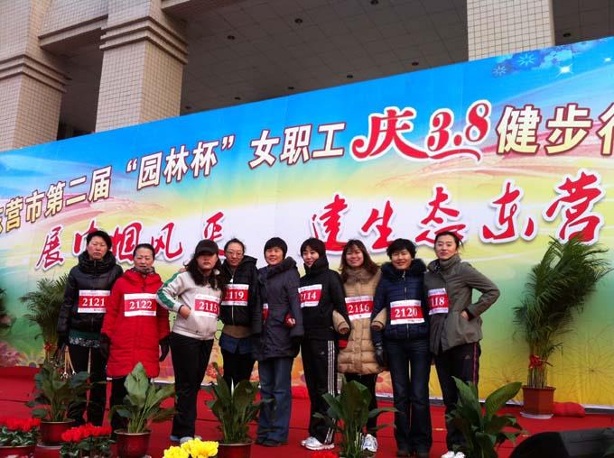3月2日早上,市婦聯在新世紀廣場舉辦了東營市第二屆“園林杯”女職工慶“三八”健步行比賽,來自市直機關95個單位2500多名女職工參加了比賽。市公交公司也派出9名健步行愛好者參加了本次比賽。并且全部走完了十公里全程。