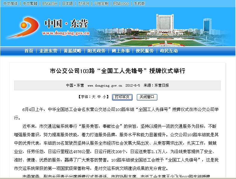 2012年6月7日東營市政府網站報道