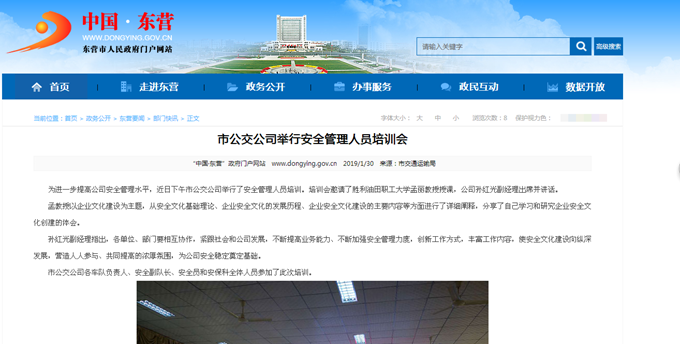 2019年2月3日東營市政府網站報道